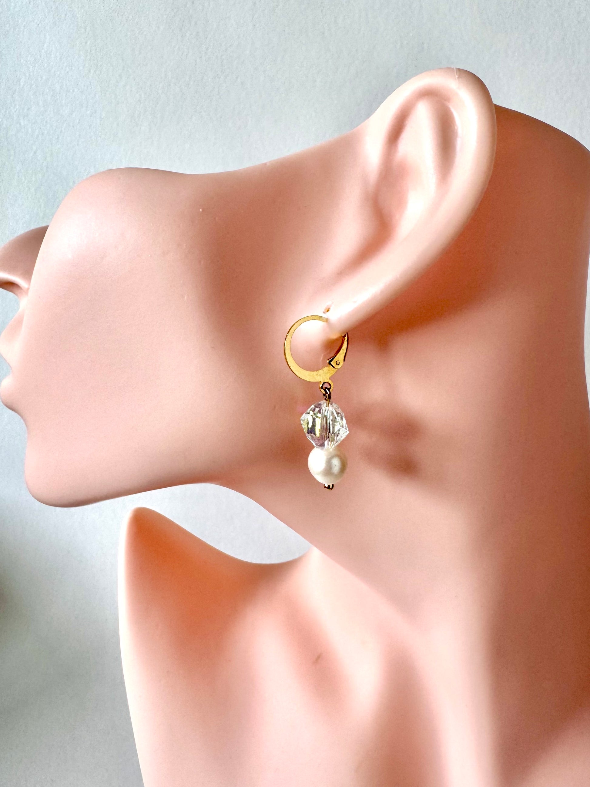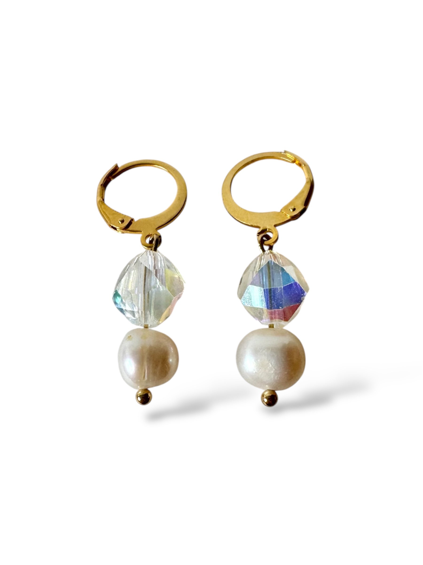 Elevate your jewellery collection with our Aurora Drops. Each pair is handmade with care, combining the timeless beauty of genuine freshwater pearls and the radiant sparkle of Austrian crystals, set on durable gold-tone stainless steel hoops.